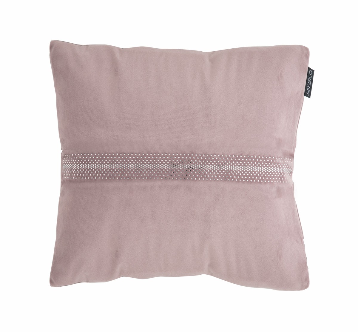 Un funda de cojín elegante, donde destaca en la zona central un tira de pedreria