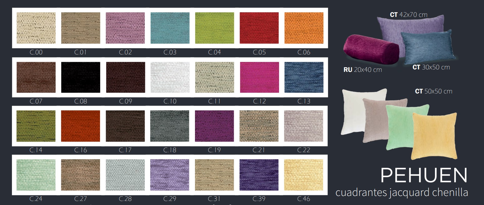 | Color | Azules, Marrones, Lino, Rojo, Negro, Naranjas, Morados, Beige, Verdes, Rosas, Granate, Grises, Amarillos |