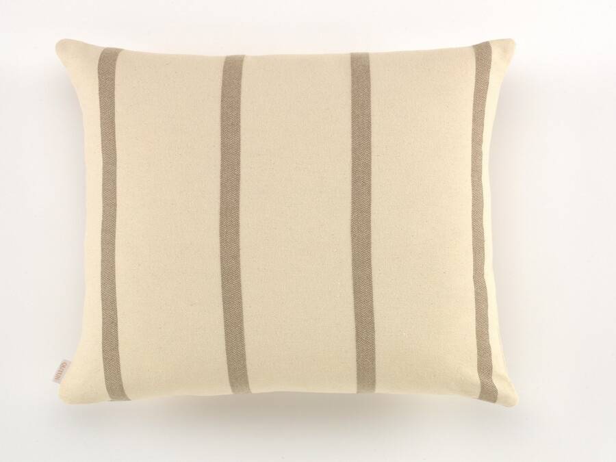 Funda de cojín fabricada con algodón natural reciclado y cremallera invisible.