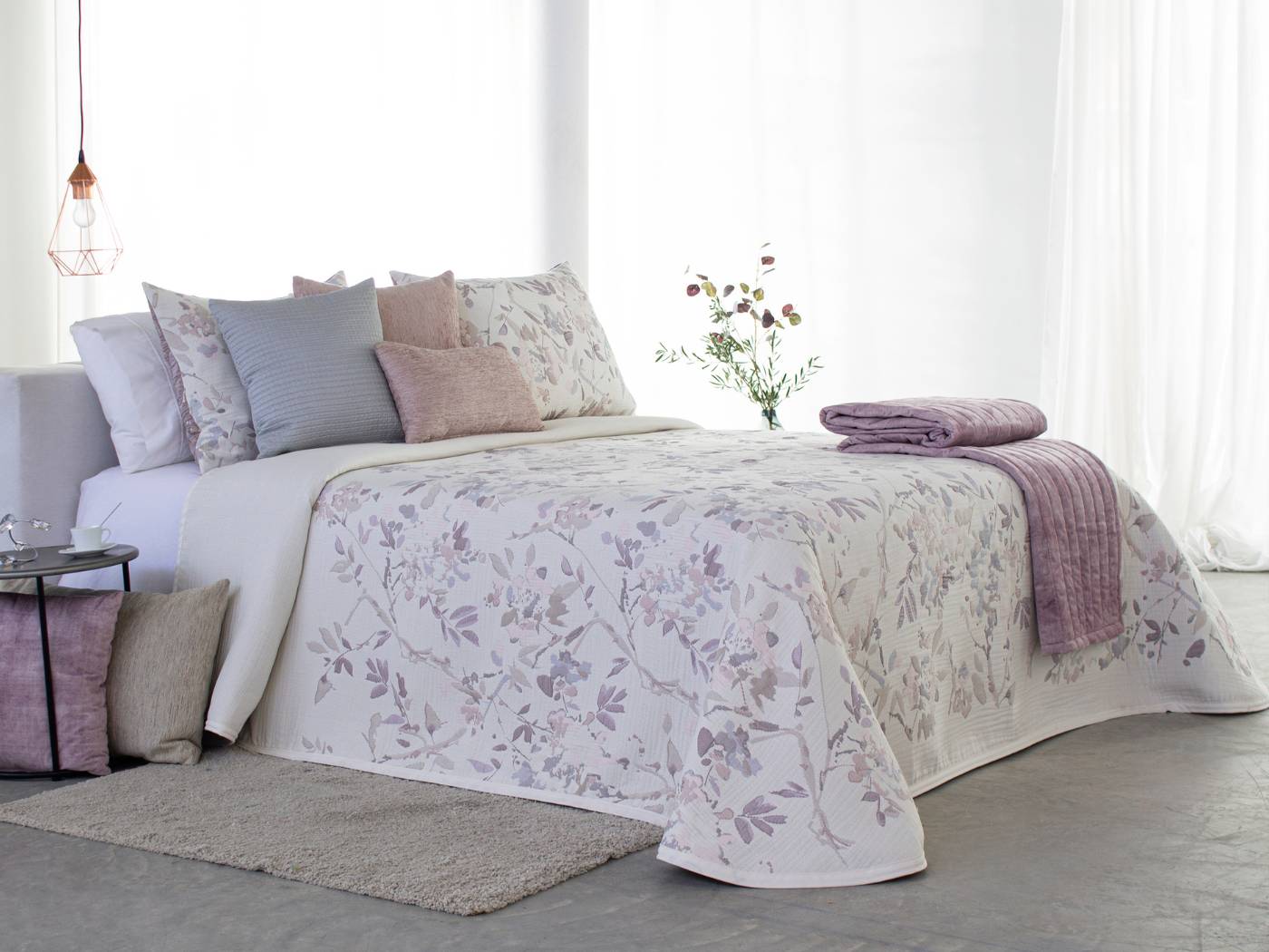Elegante colcha tipo cubrecama con diseño de flores
