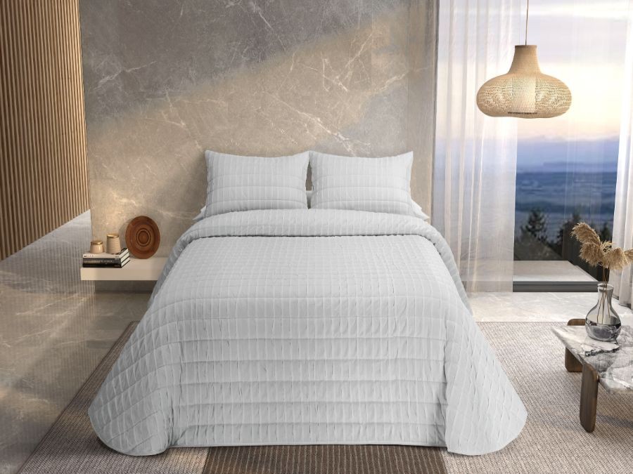 Un colcha cosida de calidad premium de diseño lineal formado por pequeños rectángulos que combina con cualquier decoracion