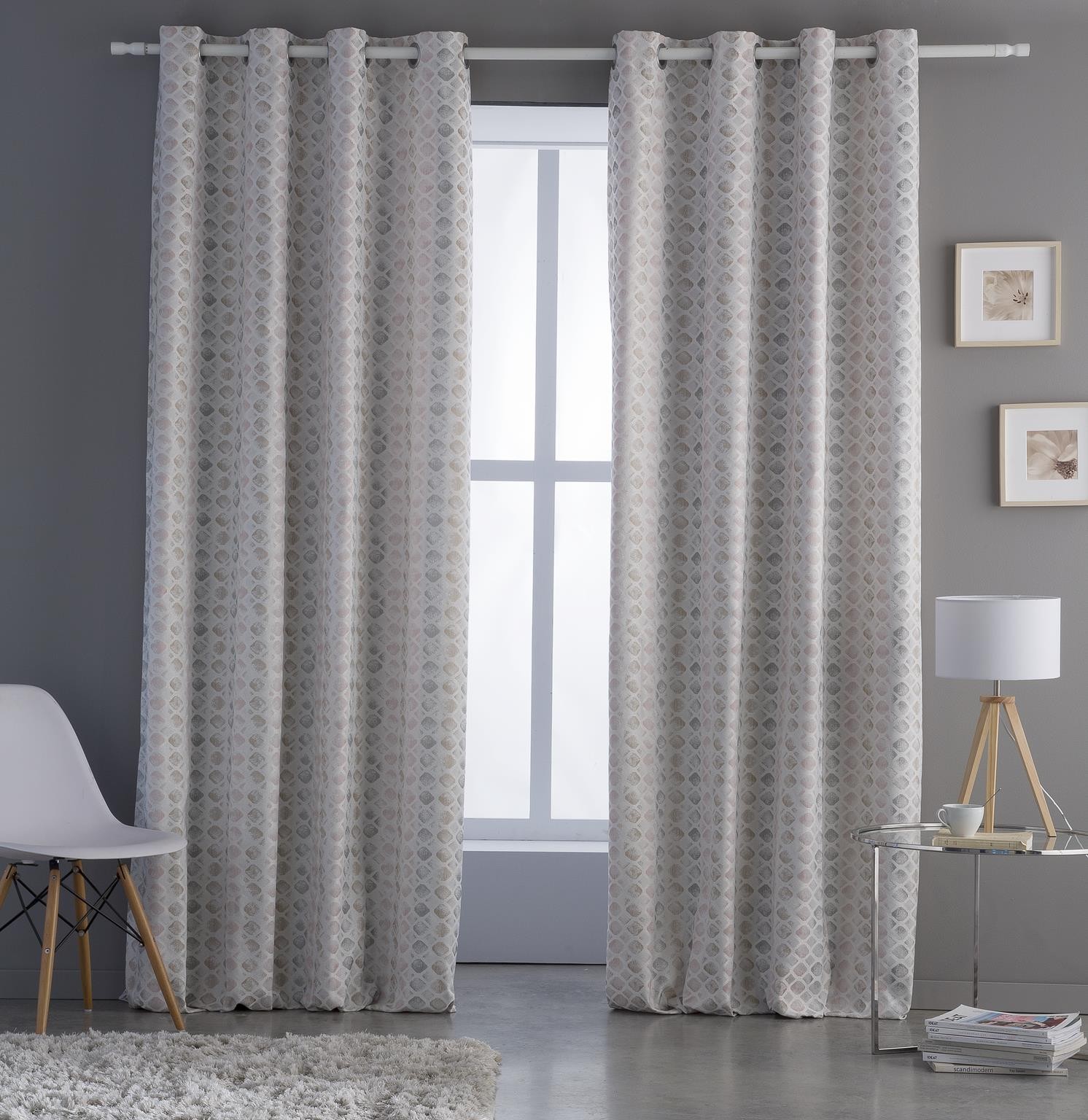 Cortina confeccionada con ollaos, en tejido jacquard de gran calidad