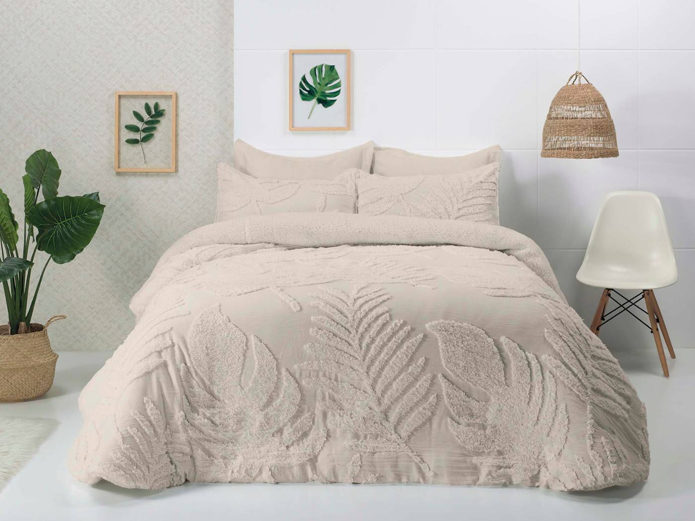 Incluye dos fundas de cojín decorativas (50x70 cm) para completar el conjunto con un estilo coordinado y de revista (para camas de 135, 150 y 180 cm).