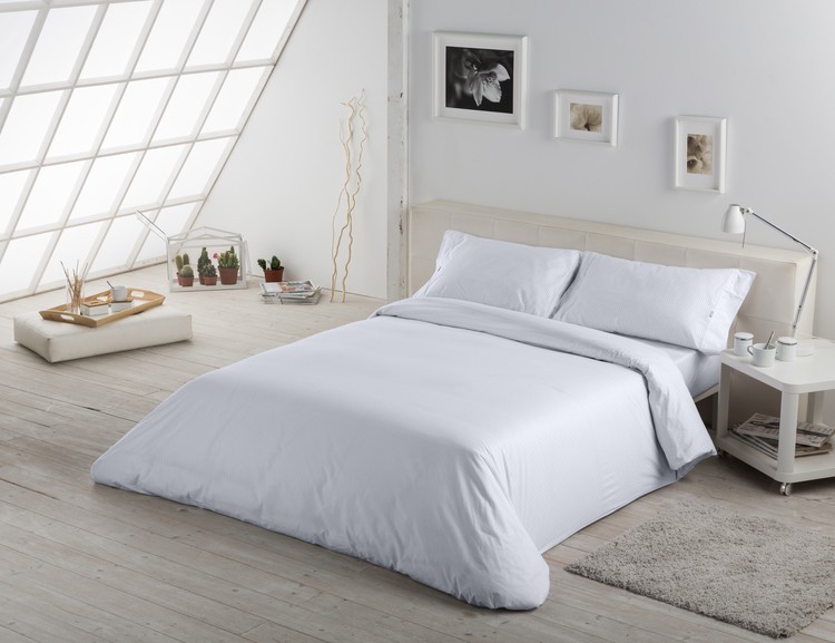 Juego de funda nórdica Satén Listado. Algodón 300 hilos. Es-Tela