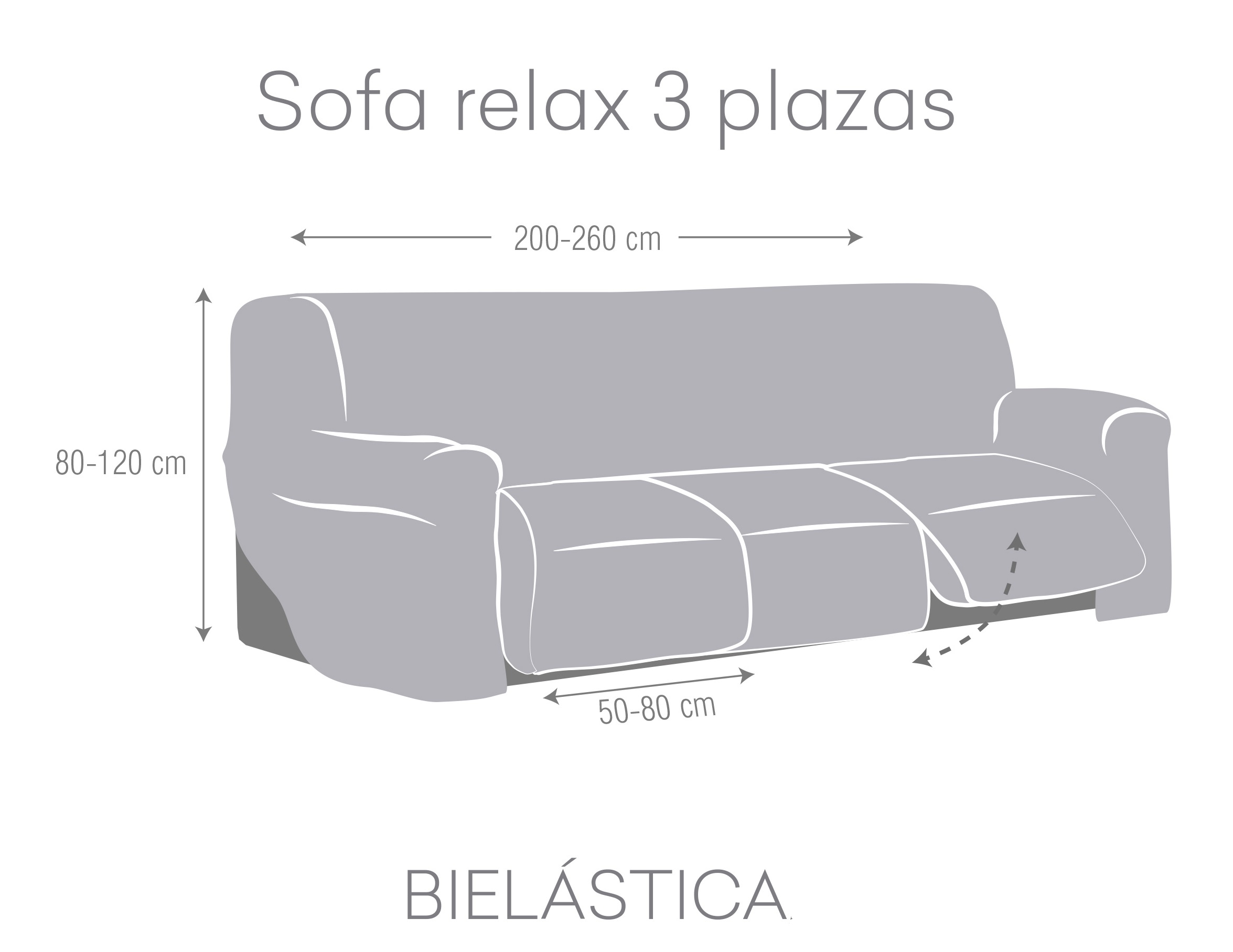 Válida para sofás relax de 3 plazas con un ancho total entre 200-260 cm y asientos individuales de 50-80 cm.