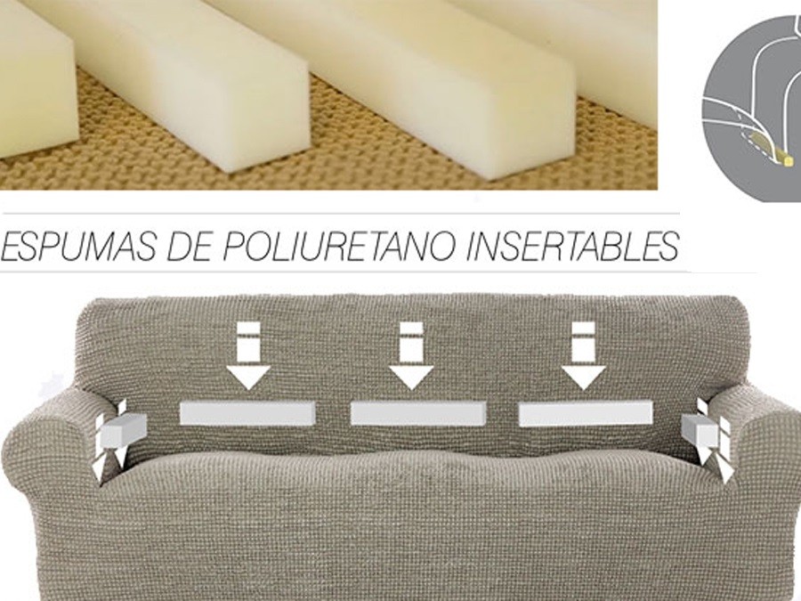 Ayuda a que la funda quede bien sujeta. Las piezas de espuma quedan escondidas ejerciendo presión sobre la tela remetida, lo que proporciona rigidez al ajustado.