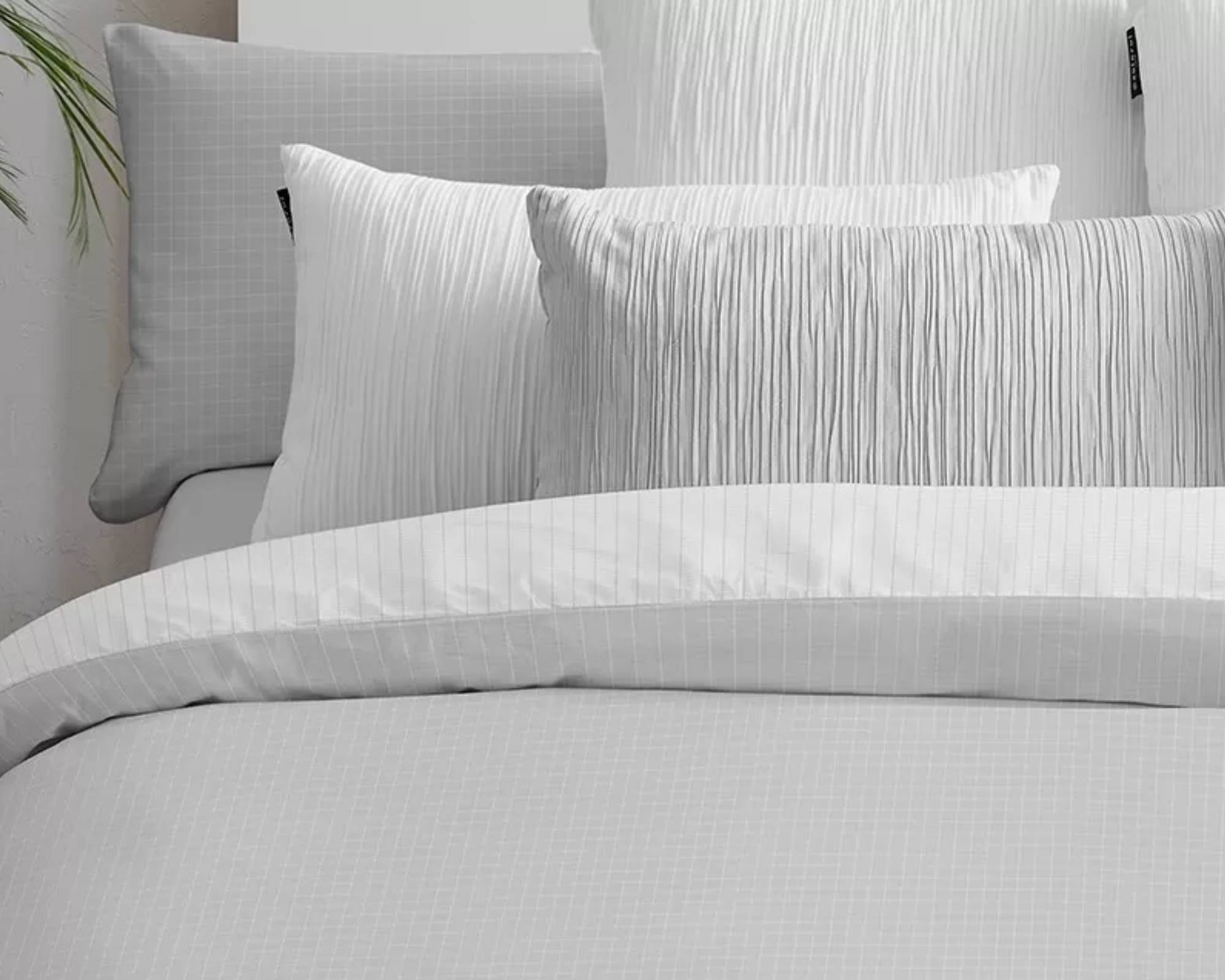 La funda nórdica y la funda de almohada son reversibles Una cara de cuadros azules o grises sobre fondo blanco y la otra de cuadros blancos sobre fondo azul o gris
