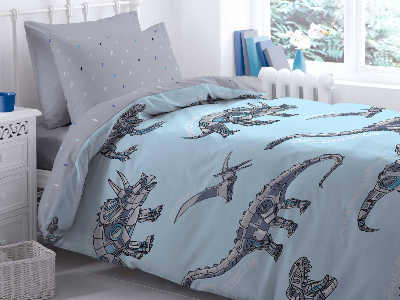 Convierte la habitación de los más pequeños en un mundo lleno de imaginación con la Funda Nórdica Infantil Reversible DINOBOT