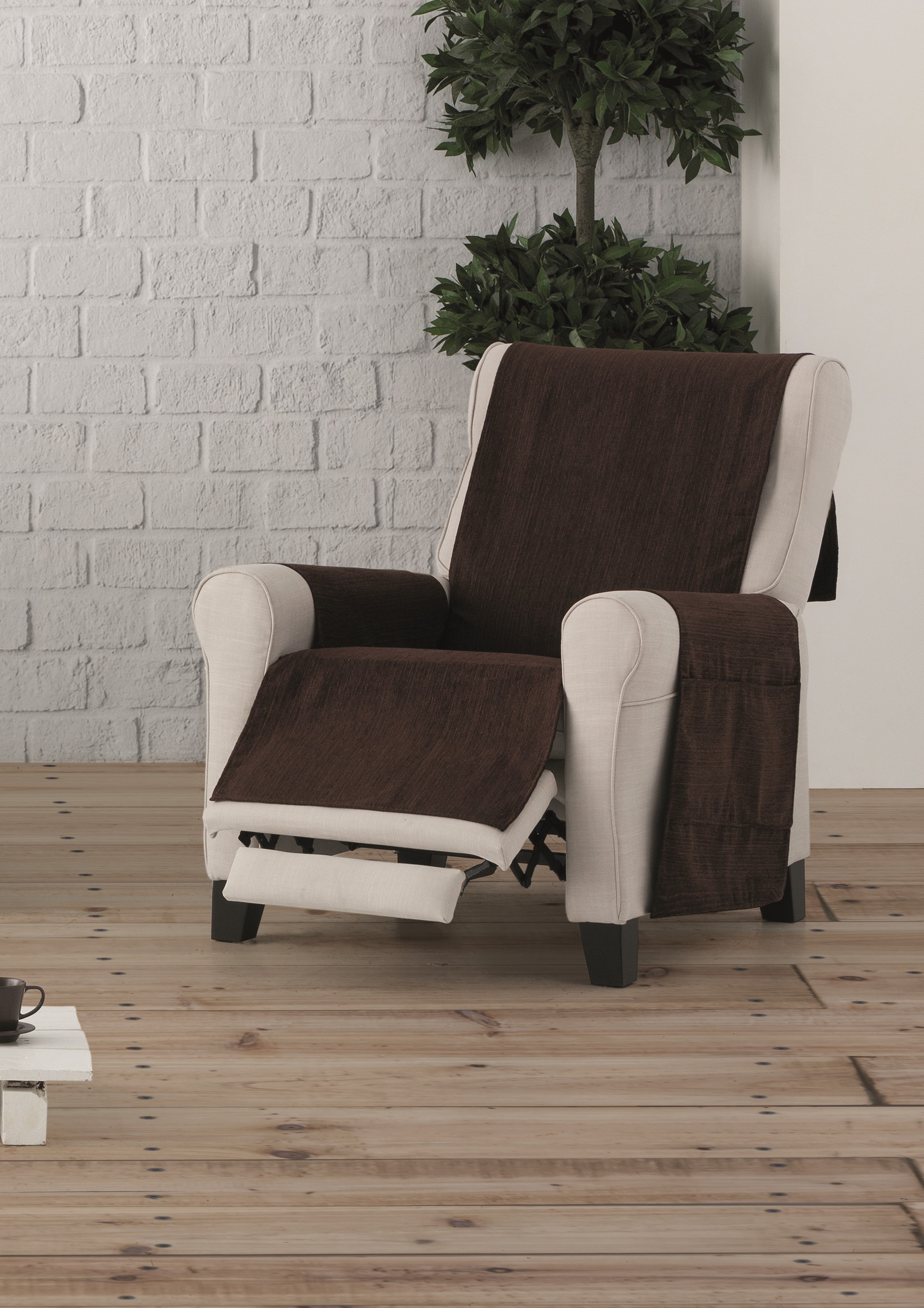 Una funda de sofa practica y fácil de colocar. Incluye dos prácticos revisteros en los reposa brazos.