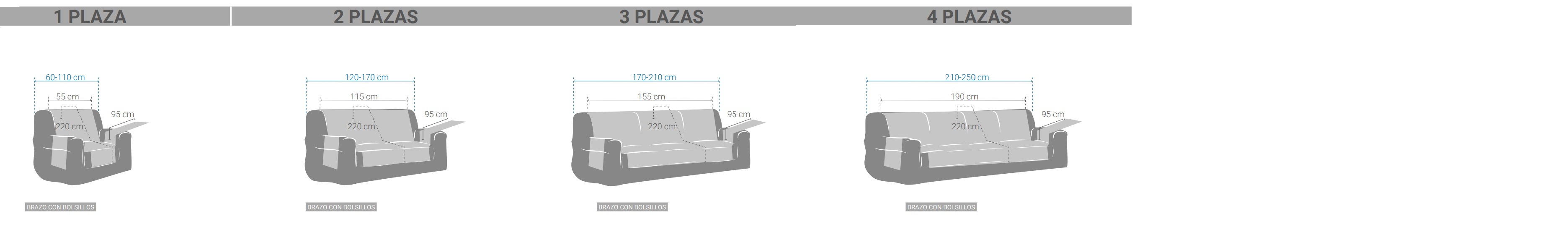 ESstá disponible para sofás de 1, 2, 3 y 4 plazas.