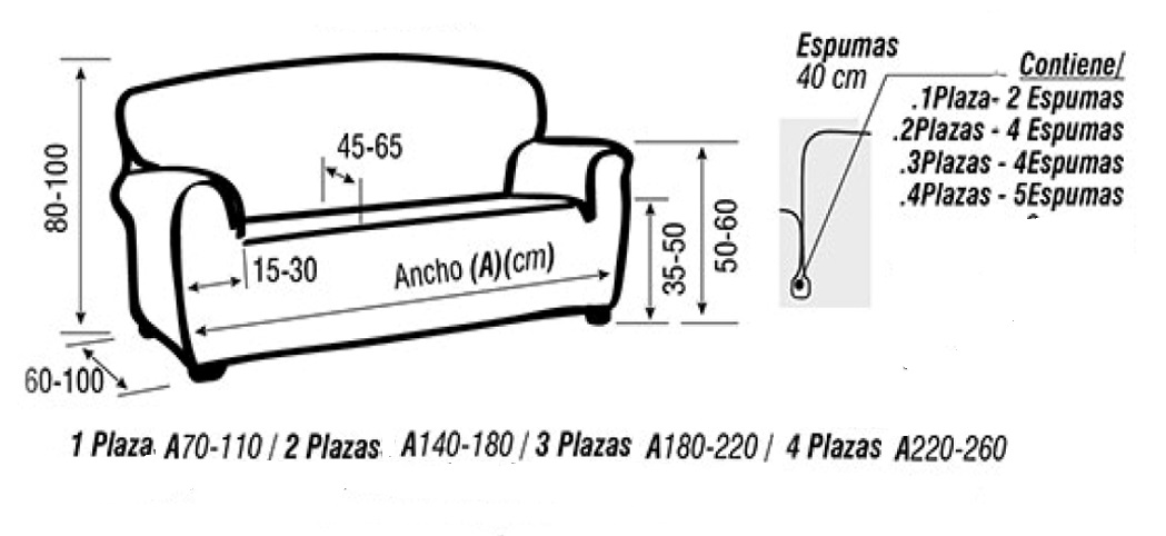 Disponible para sofás de 1, 2,3 y 4 plazas
