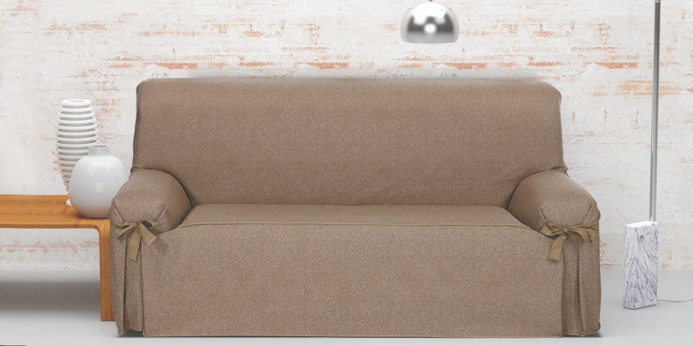 Funda sofá Con Lazos confeccionada en tejido Jacquard no elástico.