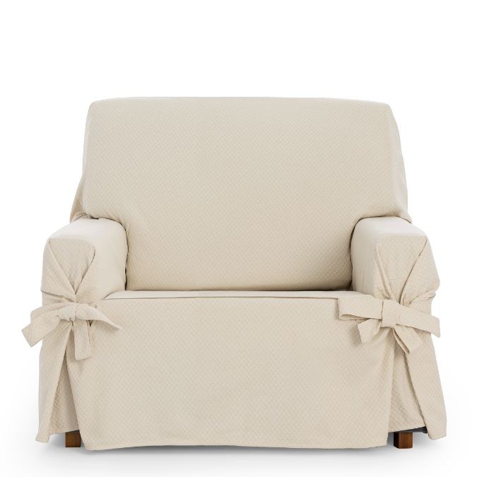 Se sujeta con unas tiras de tejido con las que hacemos cuatro lazos en el frente y la parte trasera del sofá, que dará elegancia y seriedad a la hora de cubrir tu sofá.