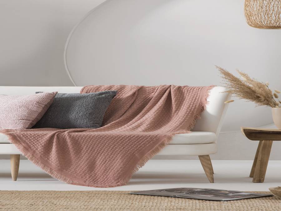 Disponible en tonos neutros que armonizan con cualquier paleta de colores, la manta AVA se convierte en un accesorio imprescindible para realzar la estética de tu sala o dormitorio.