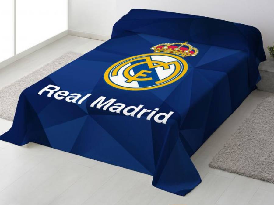 Esta manta de raschel tiene un diseño exclusivo del REAL MADRID