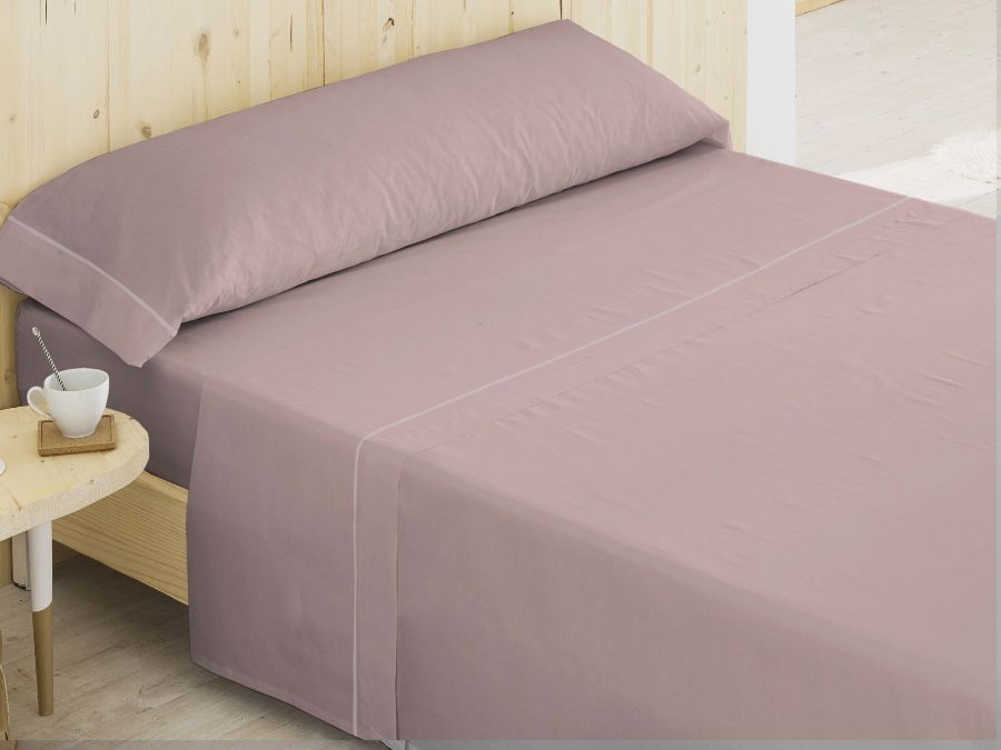Juego de sábanas liso con detalle de biés en contraste.