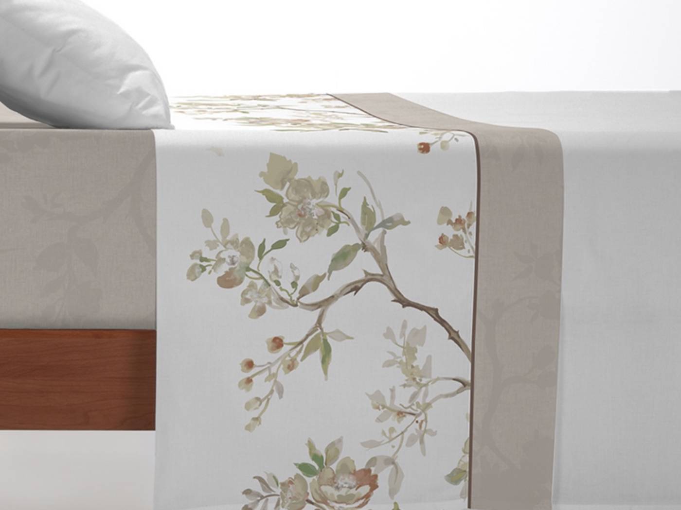Su estampado floral en tonos suaves, inspirado en ramas en flor al estilo toscano, aporta un toque romántico y primaveral a cualquier espacio.