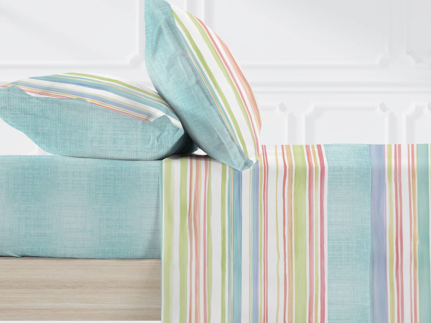 Juego de sabanas juveniles COLORS 401 de la firma Manterol de 3 piezas, incluye sábana encimera, bajera y funda de almohada.