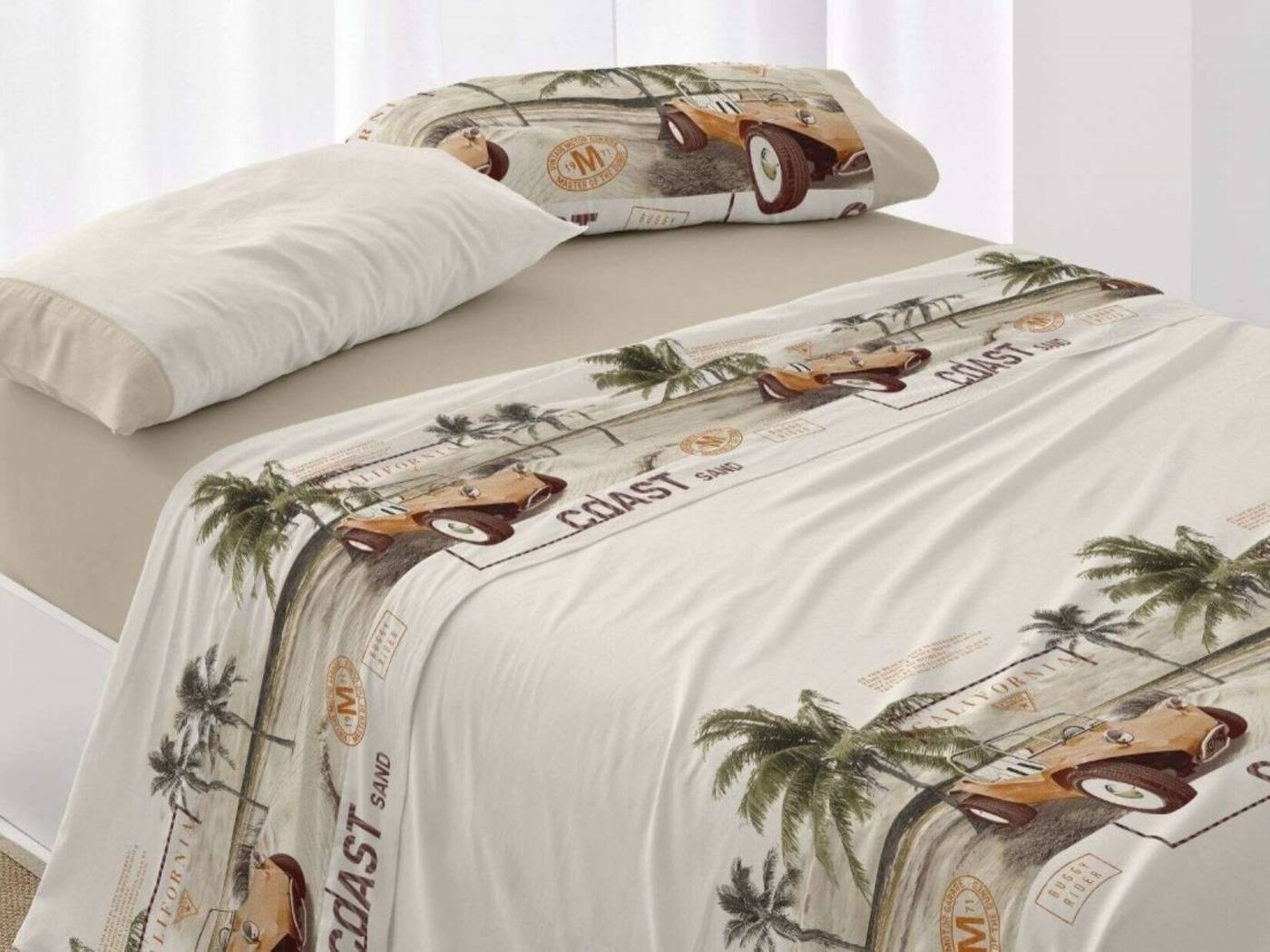 Viaja a las costas mediterráneas de décadas pasadas con el Juego de Sábanas Burrito Blanco FASHION 148.